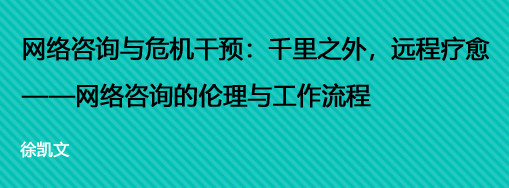 (根据北京大学徐凯文副教授“疫情期间,高校如何进行远程心理咨询和危机干预”公益课编写)