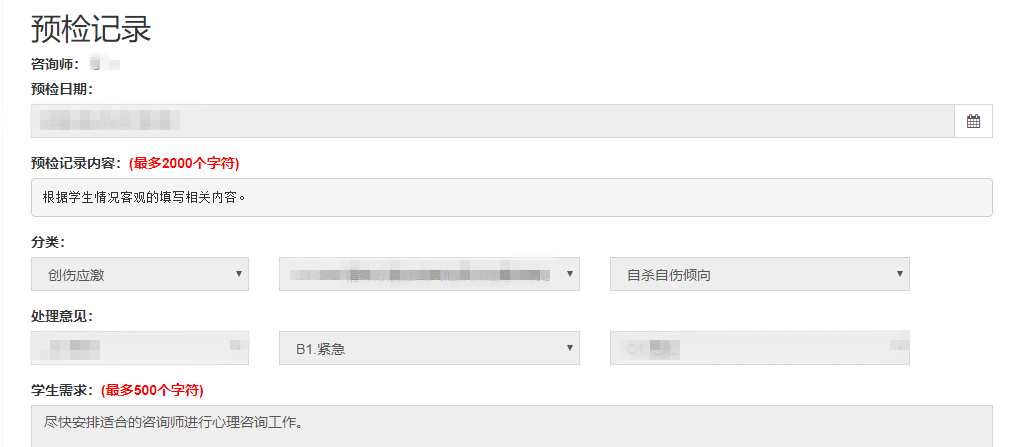 采用点选的模式,只需要按照模板设置的相关问题进行选择和简单的概述。 咨询师可以根据模板内容进行点选和500字符以内的填写,为咨询师带来最大化便利。