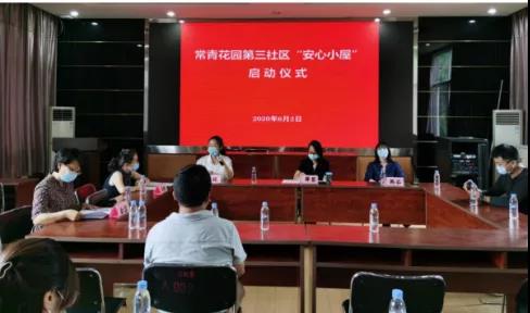 同天,在湖北省和武汉市相关部门的支持下,中国社会工作联合会与中国心理学会在武汉联合共建的第一个“安心小屋”落户武汉市东西湖区常青花园第三社区。中国社会工作联合会、中国心理学会、中国科学院心理研究所、常青花园社管办等的相关领导和专家,第三社区、融智社工机构、心理设备捐赠方北京朗心等多方代表出席启动仪式。