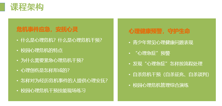 5、家长自身的心理健康观念和心理健康状况,教师的压力和心理状态不良,也会影响学生甚至激化矛盾诱发危机事件。
