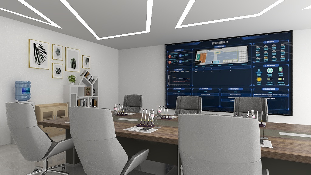 装修建议:整体环境布置简洁、大气;利用大屏设计实现数据上墙;配备办公桌椅,方便领导参观。
