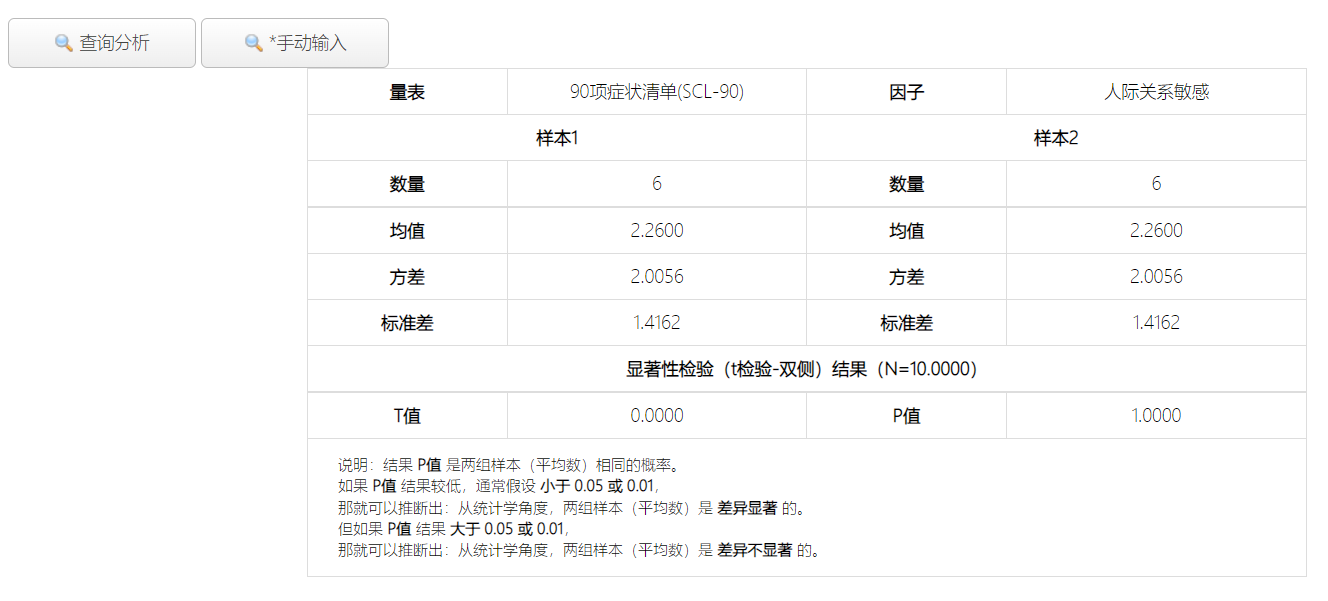 因此,系统可以统计分析样本的标准差、方差、T值、P值等数据,辅助心理工作者进行显著性差异检验,且支持原始数据导入SPSS,可以运用于心理科研。