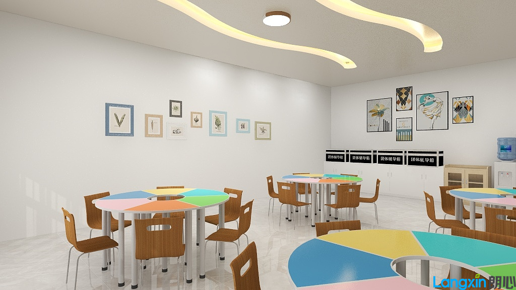 装修建议:采用色彩鲜明的设计,营造积极、和谐的团体氛围;配备团体辅导桌椅,方便开展训练;整体简洁、大方,预留空间能够容纳20-30人开展训练。