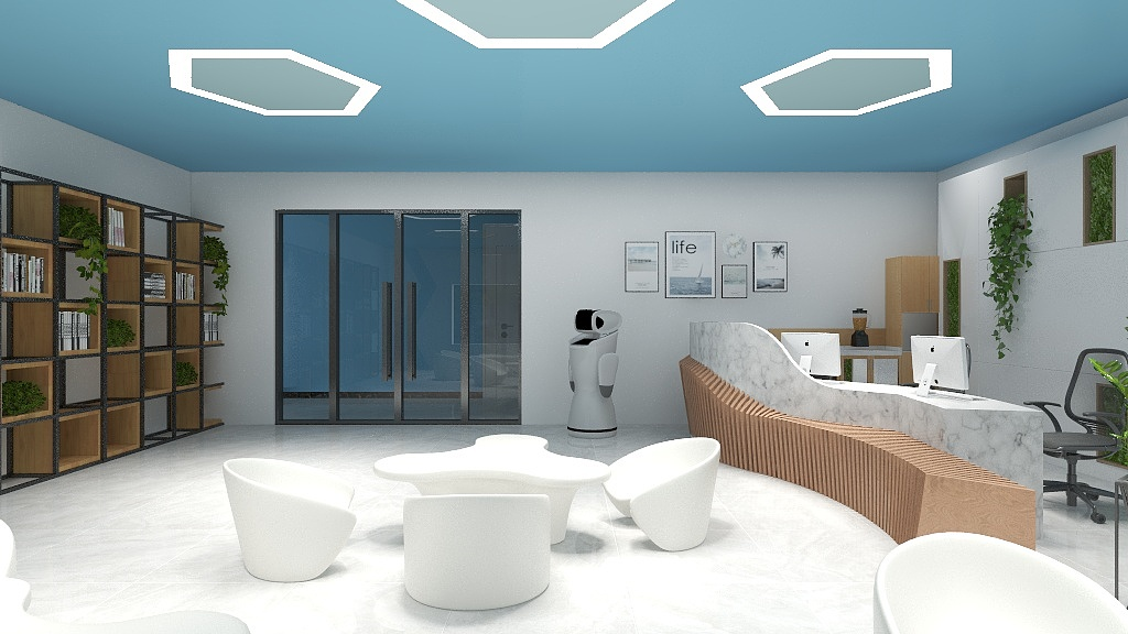 装修建议:墙面采用浅蓝色乳胶漆、配合科技线条设计,营造科学、科技的放松训练场景;地面铺设防滑地垫,防止滑倒。