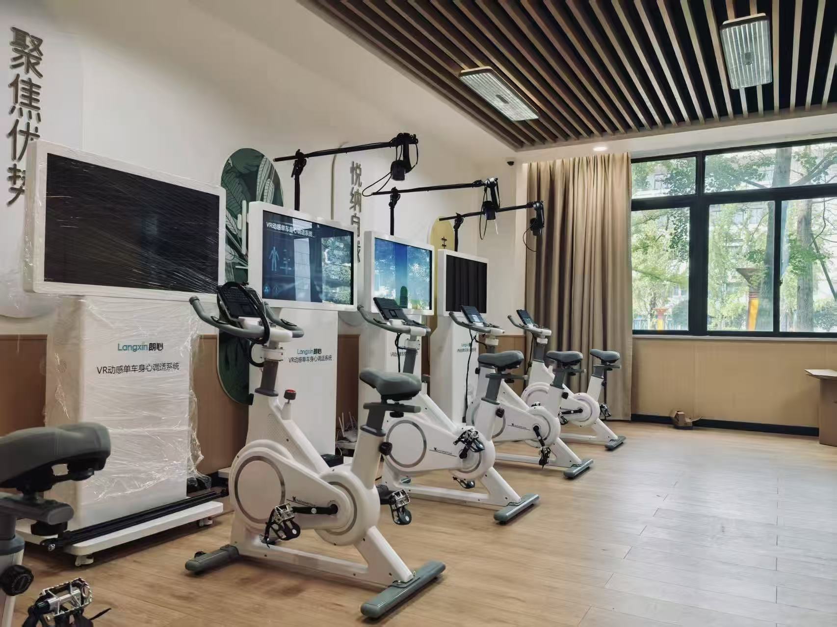 ▶ VR动感单车身心调适系统*4:3D视觉骑行+实时生理监测,让运动变得有趣又有益;