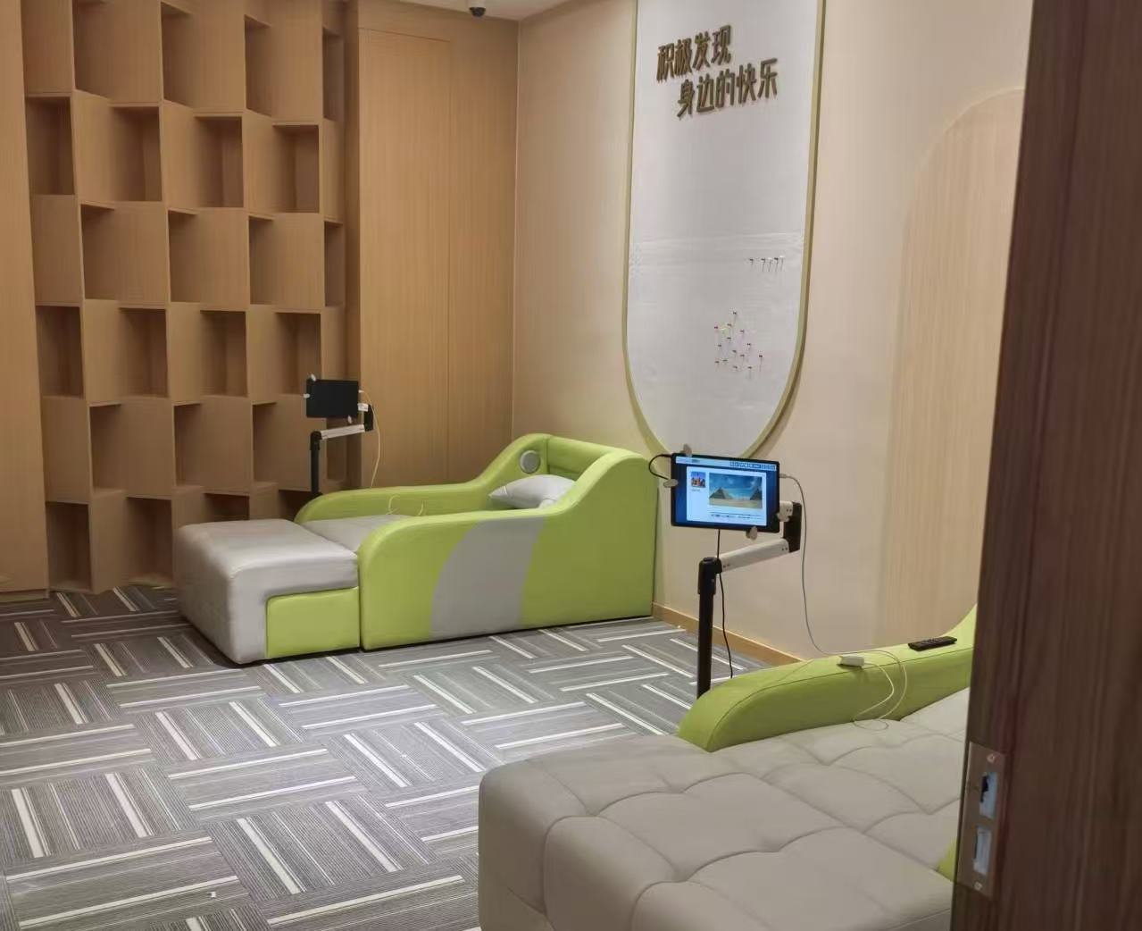 等多种专业心理场室,每个空间都融入了科技与人文相结合的设计理念。