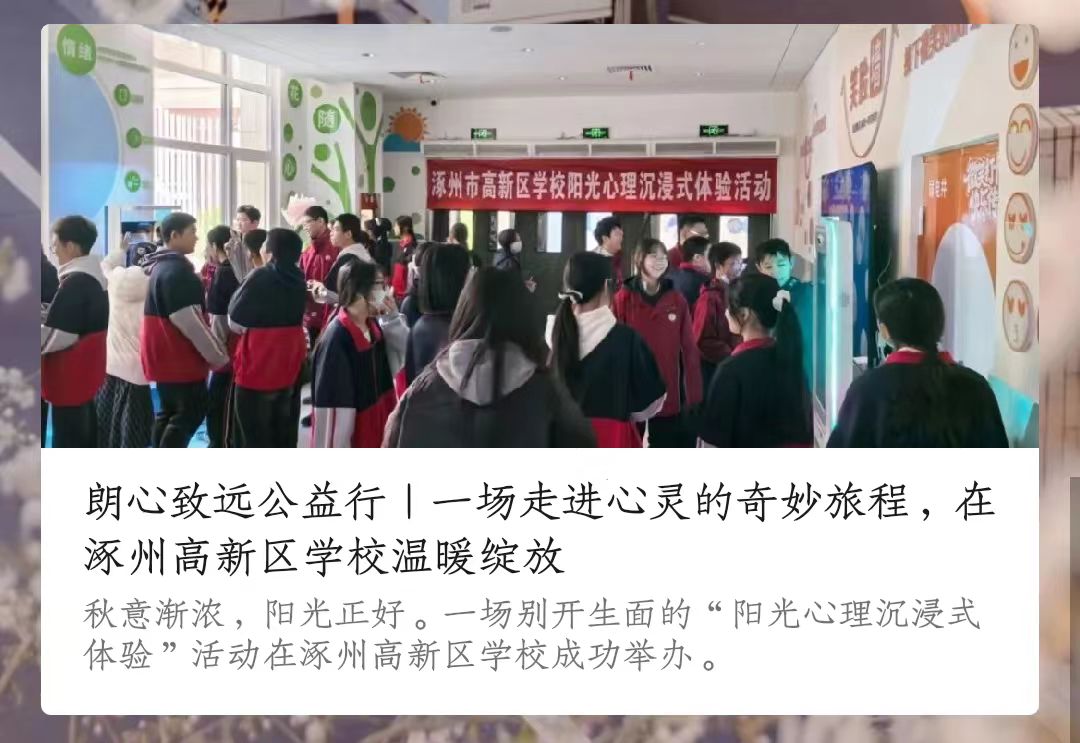 秋意渐浓,阳光正好。一场别开生面的“阳光心理沉浸式体验”活动在涿州高新区学校成功举办。