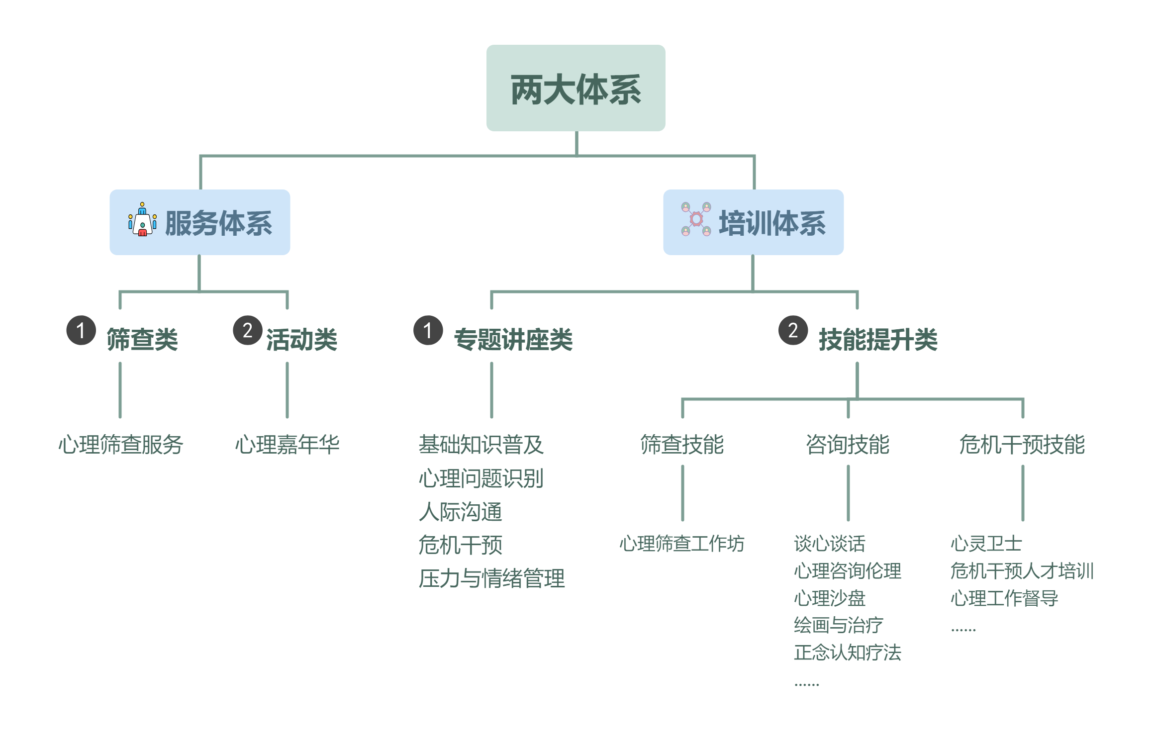 朗心基于多年专业经验,以两大服务体系为主,为各行业提供心理应用服务、满足客户各方面需求,助力心理服务落地化。